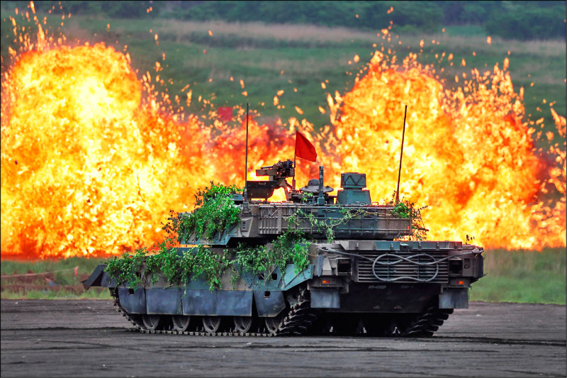 在日本防衛大臣中谷元等人視導下,日本陸上自衛隊8日在靜岡縣的東富士演習場,舉行年度最大規模實彈射擊演習「富士綜合火力演習」,出動約2000名自衛隊員、坦克、火砲、V-22魚鷹(Osprey)運輸機和無人機等,與往年一樣設想在離島戰鬥,抵禦並擊退敵方的進攻。此次演習也首次展示為擁有反擊能力(對敵基地攻擊能力)而開發的改良型12式地對艦飛彈。陸自表示,在白天和晚間的兩場演習中總計使用彈藥約76.6噸,相當於約8.7億日圓(約1.86億台幣)。(法新社)