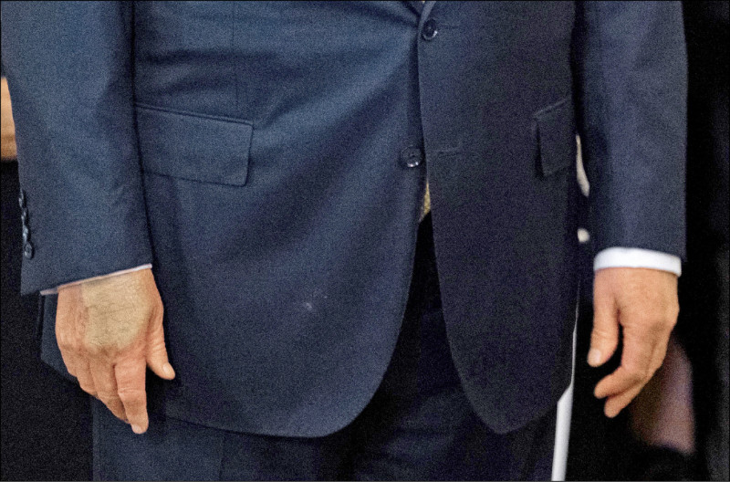 川普七月十六日的手部特寫照片。(法新社)