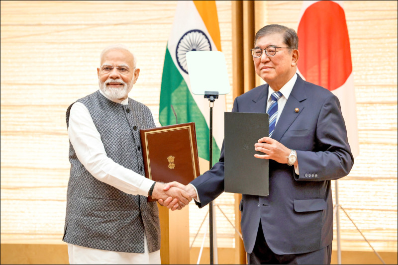 印度總理莫迪廿九日訪日與首相石破茂會談,會後發表新版「日印安全保障合作聯合聲明」及多項合作文件,雙方除深化既有安保合作,也將擴大經濟合作,並制定未來十年具體方向的「共同願景」。