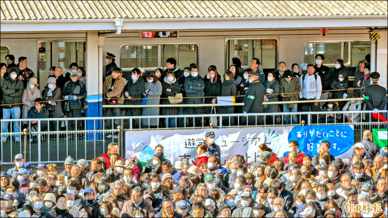 高市早苗為「台灣女婿」山口晉助講,吸引眾多人潮,電車月台上都站滿民眾。(記者林翠儀攝)