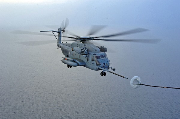 圖為美軍超級種馬直升機在飛行過程中實施了空中加油。(圖片來源:美國國防部網站)